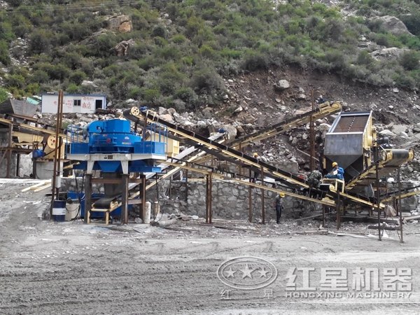 機(jī)制砂生產(chǎn)線現(xiàn)場圖,圓錐破更適合破碎硬度大的物料